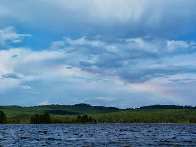 After lunch, we tried another lake which was not so far from the camping site. Here, we caught a few small char fishes , which became our tasty dinner that evening. The rain poured while we were in the middle of the lake, after which came the rainbow.
